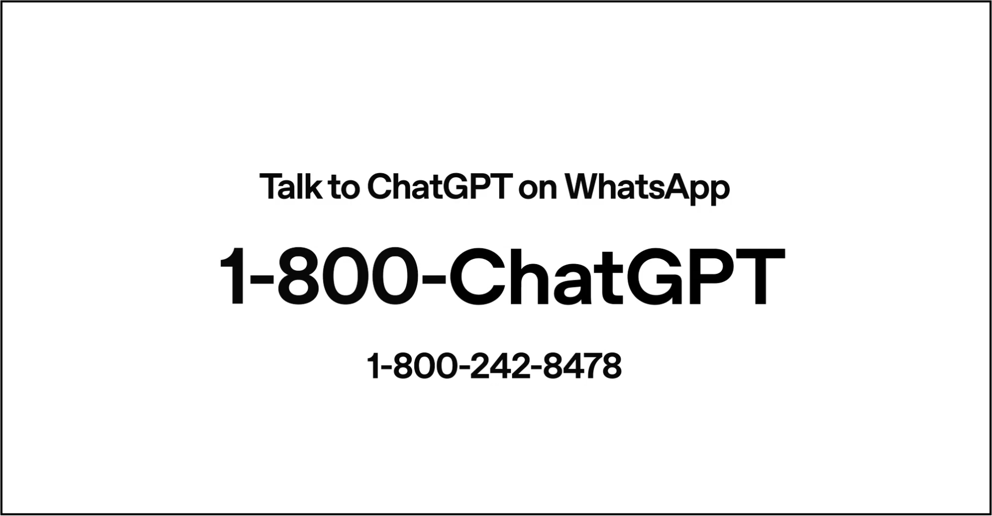 Los usuarios en los EE. UU. pueden llamar al 1-800-CHAT-GPT para hablar con la IA, mientras que en todo el mundo se puede usar WhatsApp para enviar mensajes a ChatGPT.