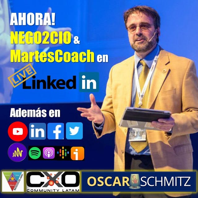 Visita nuestros sitios: CXO-community.com, MastesCoach.OscarSchmitz.com, Store.OscarSchmitz.com, EquilibrioPsicofisico.com y Nego2CIO.com para ver el nivel de nuestros contenido y alcance.