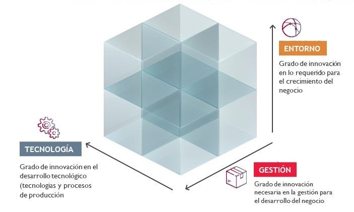 Debido a ello es que entendemos que una forma de abordar la planificación estratégica para nivelar en forma balanceada el grado de innovación en cada compañía, se traduce en conformar un “CUBO DEL GOBIERNO TECNOLÓGICO”, en el cual podamos evaluar las condiciones de entorno de negocio, desarrollo de la tecnología y la madurez y capacidades de la gestión, lo que nos permite determinar el grado de innovación en: