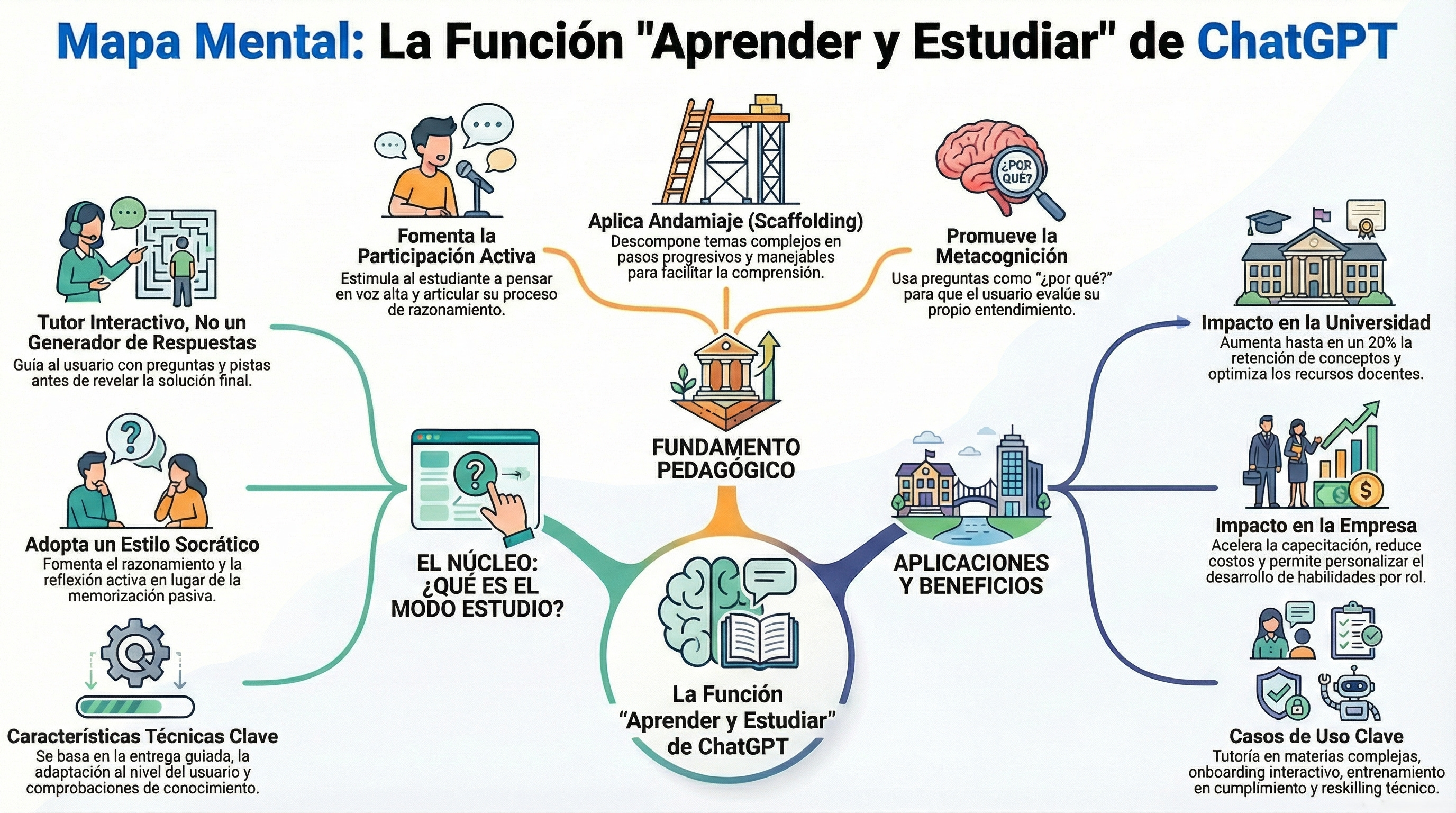 Desde 2023, la IA generativa se volvió un “atajo” tentador: resuelve ejercicios, redacta textos y responde rápido. El problema es obvio: respuesta inmediata ≠ aprendizaje. El Modo Estudio de ChatGPT (en la interfaz: “Estudia y aprende”) es la respuesta estratégica de OpenAI a ese dilema: convertir a ChatGPT en un tutor que guía el razonamiento, no en una máquina de soluciones. (OpenAI)