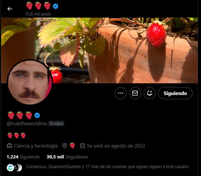 Recientemente, entre mis redes sociales que me informa de lo obvio y no tanto, descubrí una cuenta en X (anteriormente Twitter) llamada @iruletheworldmo que ha llamado mi atención (también preocupación) y la de muchos en la comunidad tecnológica, que estoy inmerso, que están interesados en IA. Esta cuenta ha estado publicando mensajes crípticos y generando especulación sobre su conexión con un proyecto secreto de OpenAI llamado "Strawberry".