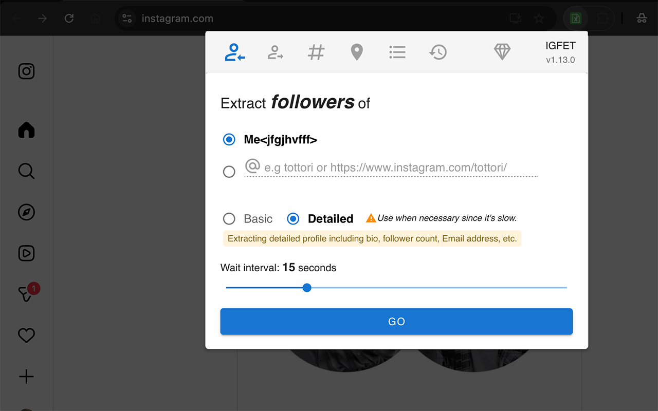 Extensión Chrome: Analisis de seguidores de cuentas Instagram