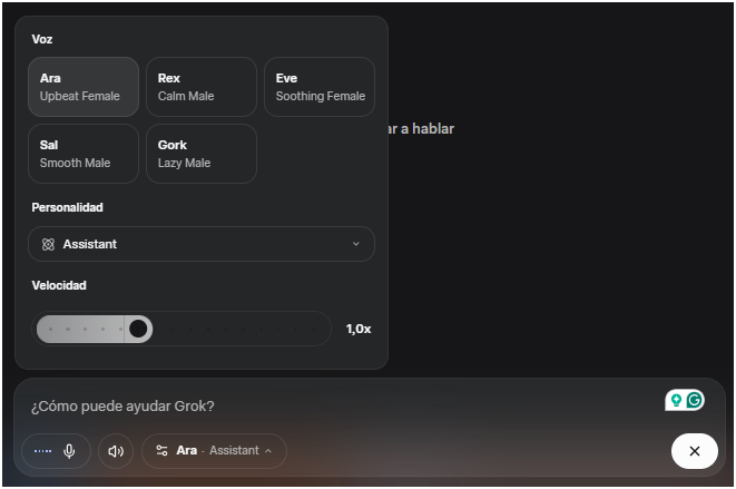 Ejemplo: Un estudiante practica inglés con una "personalidad" de profesor nativo, recibiendo feedback inmediato, mejorando fluidez en un 25% per sesiones según guías de YouTube. Anunciado por Elon Musk en agosto 2025 como expansión. Opinión: Fundamentada en reseñas de Reddit, esto humaniza la IA, inspirando conexiones globales como en *The Age of AI* de Kissinger et al. (2021).