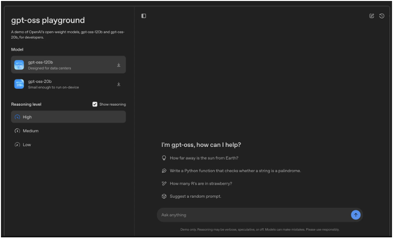 Ahora, nos movemos a la aplicación GPT-OSS, que debes instalar siguiendo las instrucciones de su web oficial, https://gpt-oss.com/