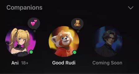Entre ellos destaca Ani, una versión anime descrita como "medio pornográfica" y "novia medio erótica". También se ha presentado una especie de "gato/perro peludo" y se espera la versión masculina de Ani, llamada Valentine, pronto.