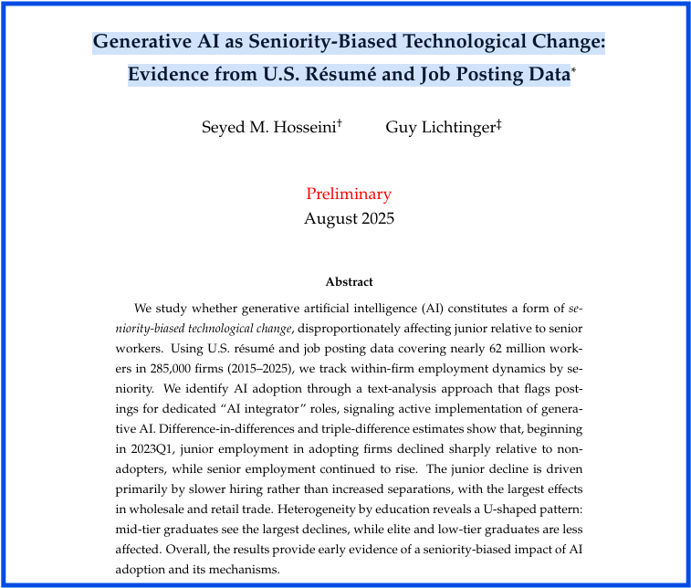 Documento: Generative AI as Seniority-Biased Technological Change: Evidence from U.S. Résumé and Job Posting Data,