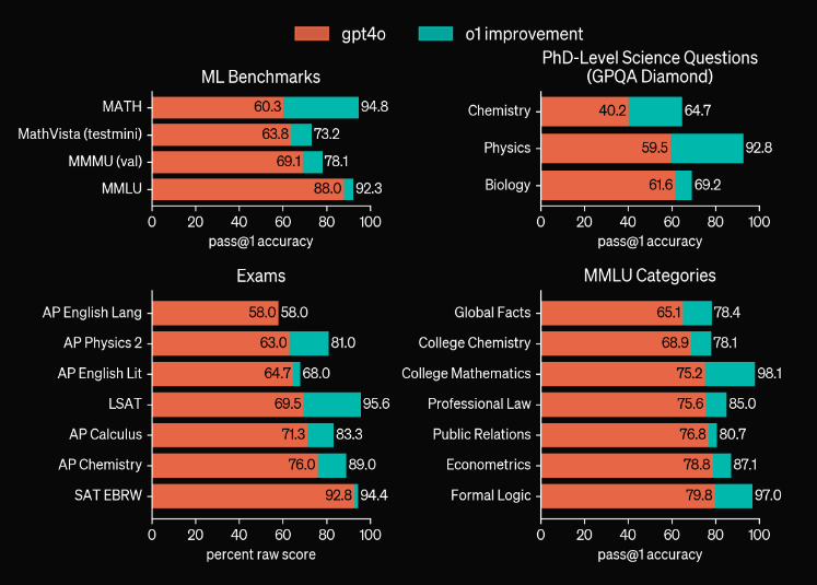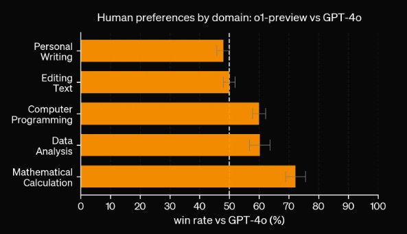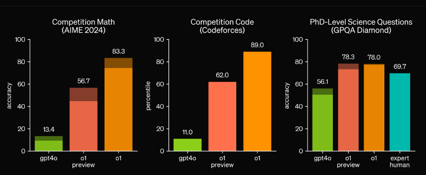 Los resultados de las pruebas y evaluaciones demuestran que el o1-preview tiene un rendimiento sobresaliente: