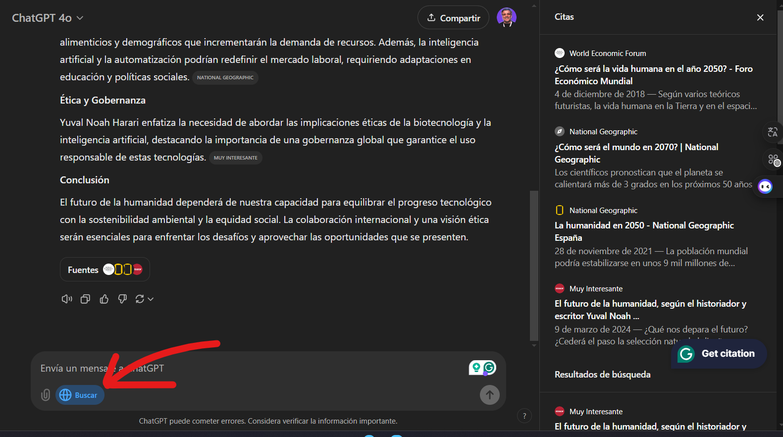 Consulta sobre el tiempo: En una ocasión, necesitaba planificar una reunión al aire libre y quería verificar el pronóstico del tiempo. Simplemente pregunté en ChatGPT: "¿Cuál será el clima en Buenos AIres el próximo viernes?" SearchGPT me proporcionó una respuesta actualizada con enlaces a fuentes meteorológicas confiables, permitiéndome tomar decisiones informadas sin salir de la conversación.