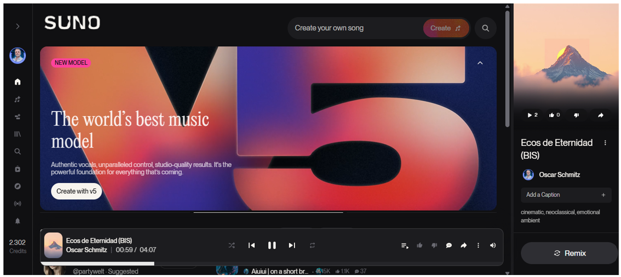 API externo: posibilidad de integrar esta generación en otros flujos (por ejemplo, automatización de contenido audiovisual, campañas de marketing con música generada al vuelo). Según una fuente, “official Suno API is priced at approximately $0.04 per creation API call”. blog.laozhang.ai